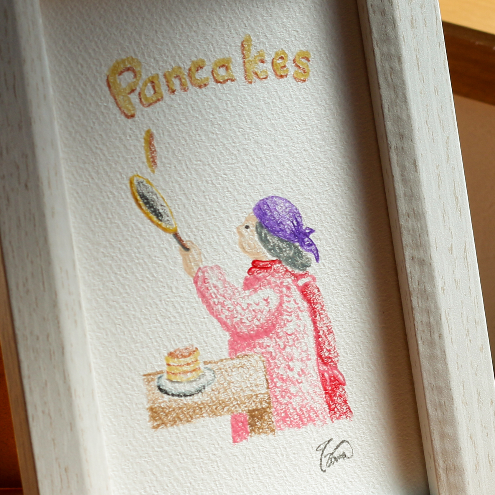 色鉛筆画が額の透明プラスチックカ部分に付く場合があります。
