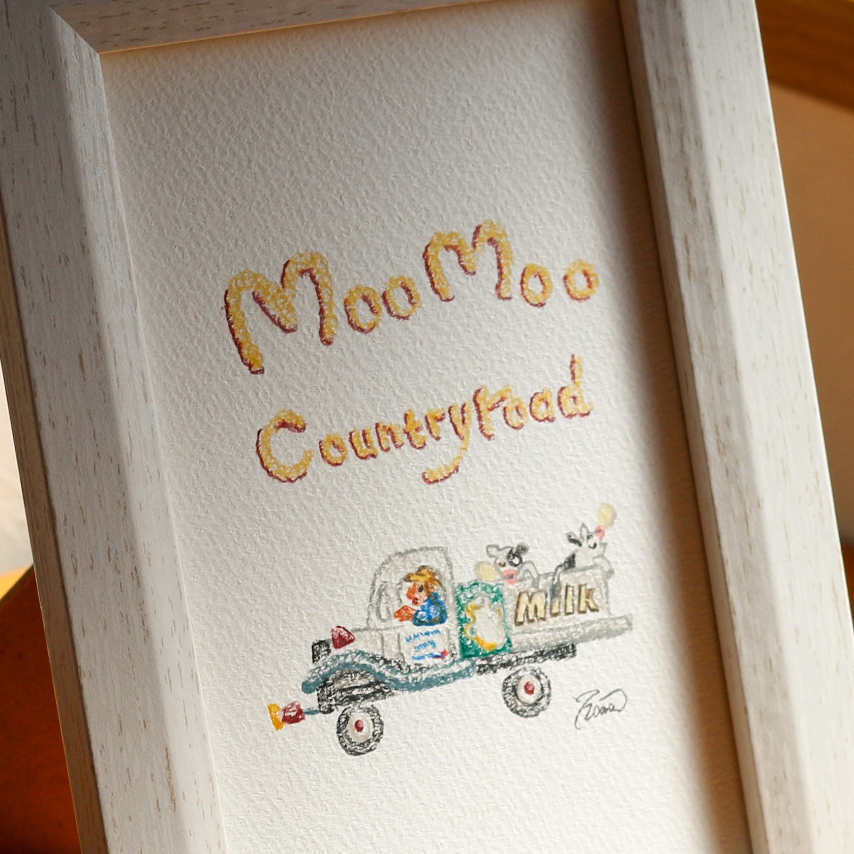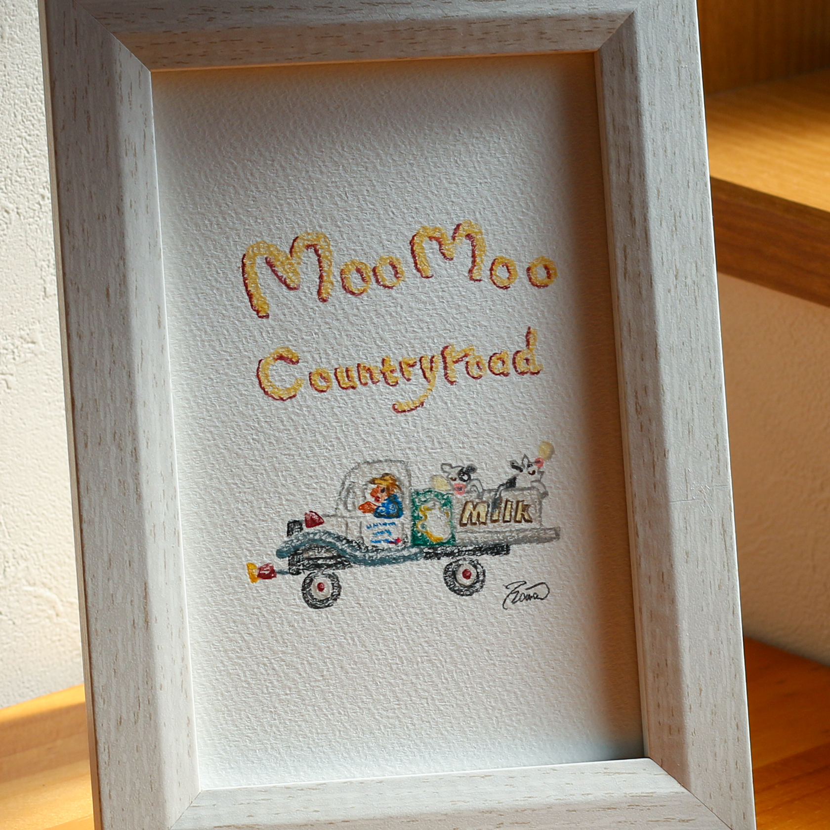 ●もーもーカントリーロード● オリジナル直筆色鉛筆画【インテリア雑貨・額付】ハガキサイズ c5