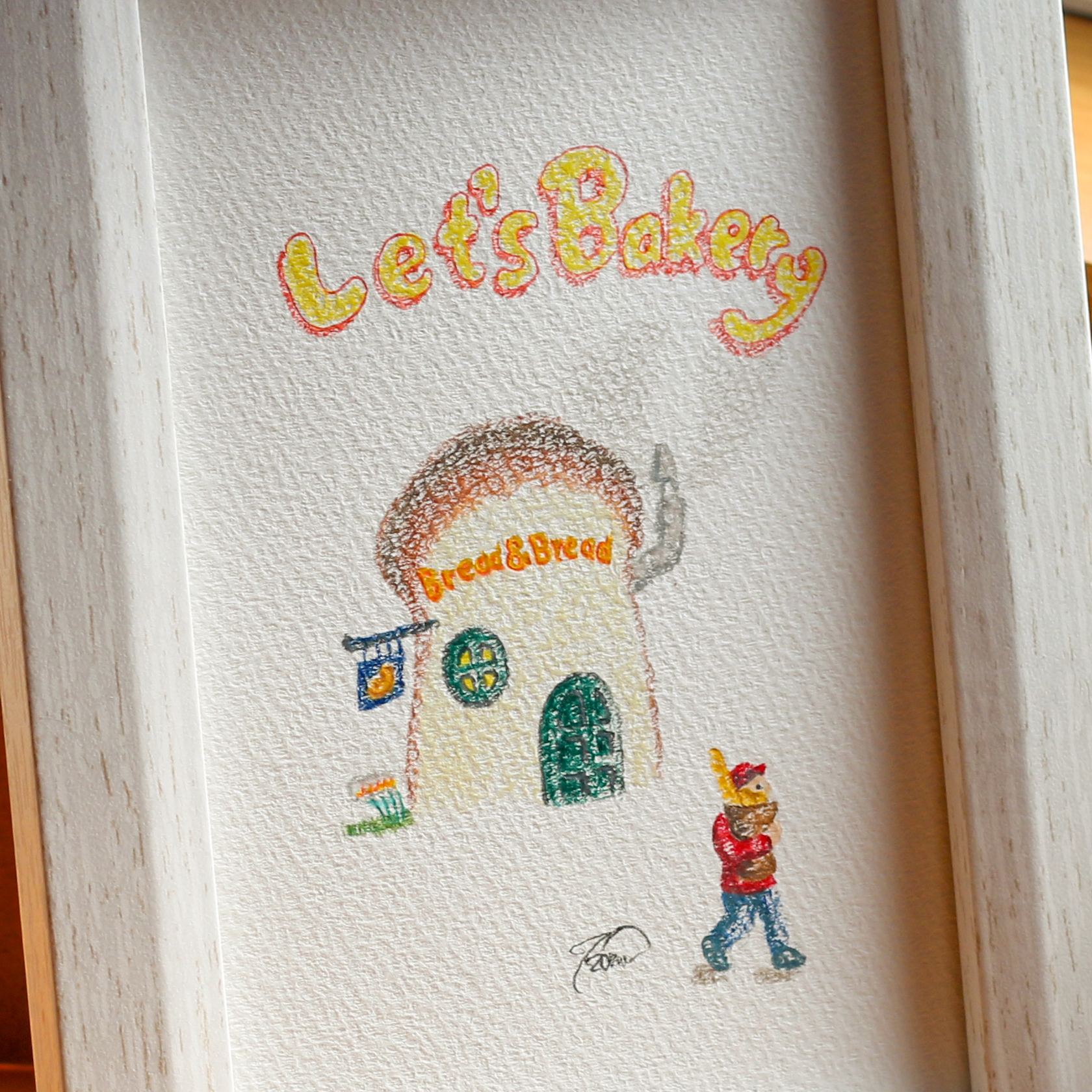 色鉛筆画が額の透明プラスチックカ部分に付く場合があります。