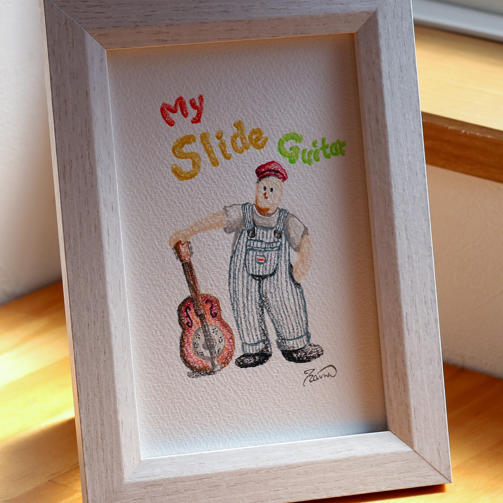 ●僕とギター● オリジナル直筆色鉛筆画【インテリア雑貨・額付】ハガキサイズ c1
