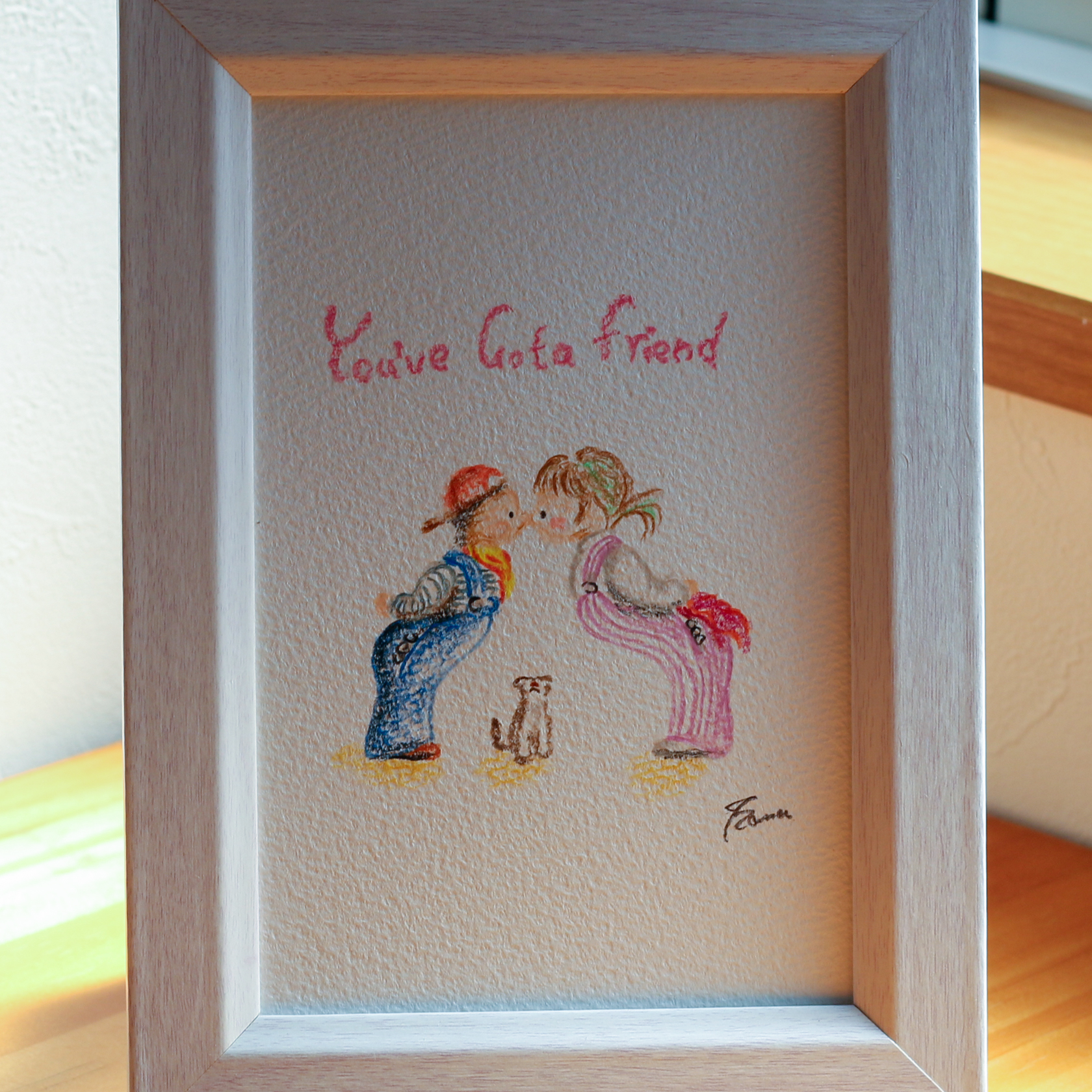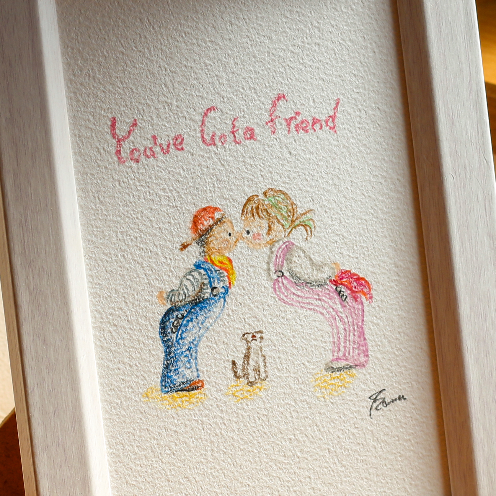 ●君の友達● オリジナル直筆色鉛筆画【インテリア雑貨・額付】ハガキサイズ c2