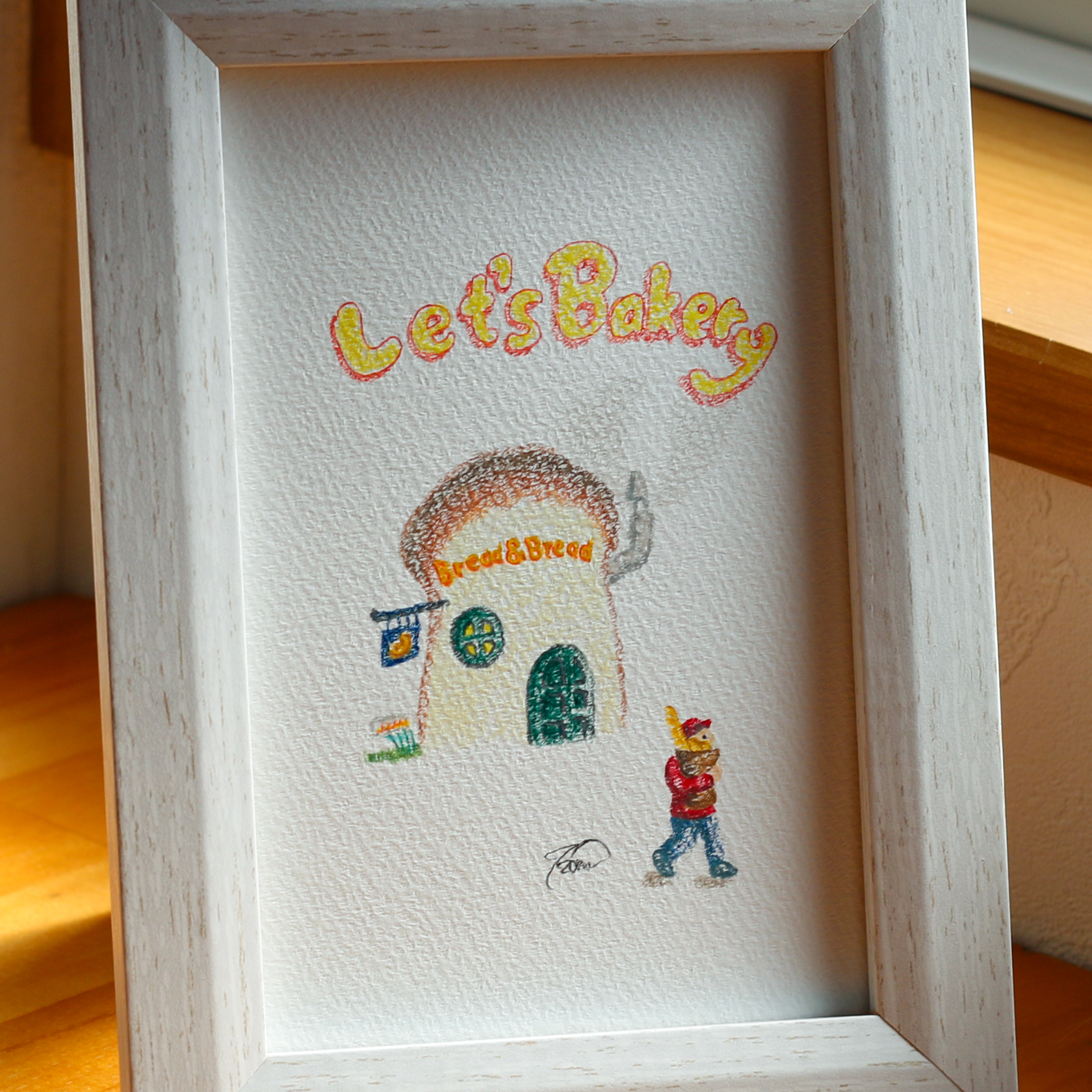 色鉛筆画が額の透明プラスチックカ部分に付く場合があります。
