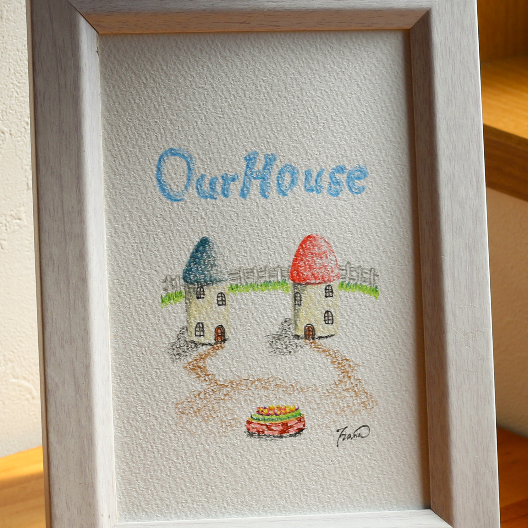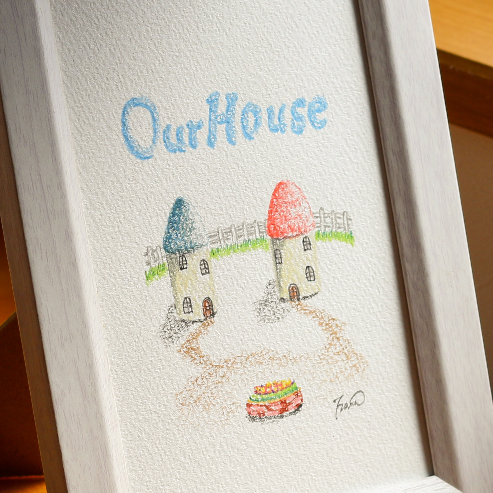 ●僕たちの家● オリジナル直筆色鉛筆画【インテリア雑貨・額付】ハガキサイズ c8